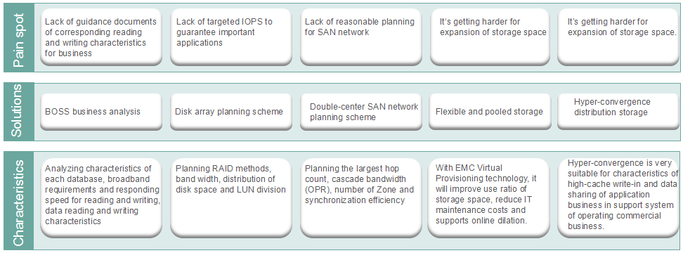 Aiming at the problem of BOSS system at present, ECCOM network proposes the Operators Large SAN Network and Storage Optimization Solution:
