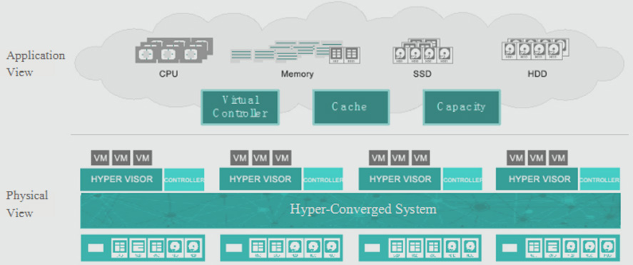 Hyper convergence uses "software-defined" technology and realizes traditional data center IT services on common x86 server, including computing, storage, virtualization, network, and operation & maintenance. To put it more simply, it “replaces server + traditional centralized shared storage perfectly with x86 server plus software”.