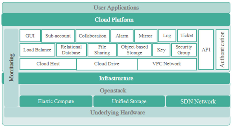 - Be structured fully based on OpenStack open source platform and development specifications, 100% support native OpenStack API, keep abreast with the community and be never outdated, and allow secondary in-house development by using all resources available from the full-stack OpenStack ecosystem;