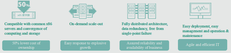Our solution can be quickly deployed, easily managed and scaled up and is able to provide a unified resource pool and powerful support to applications as required by business.